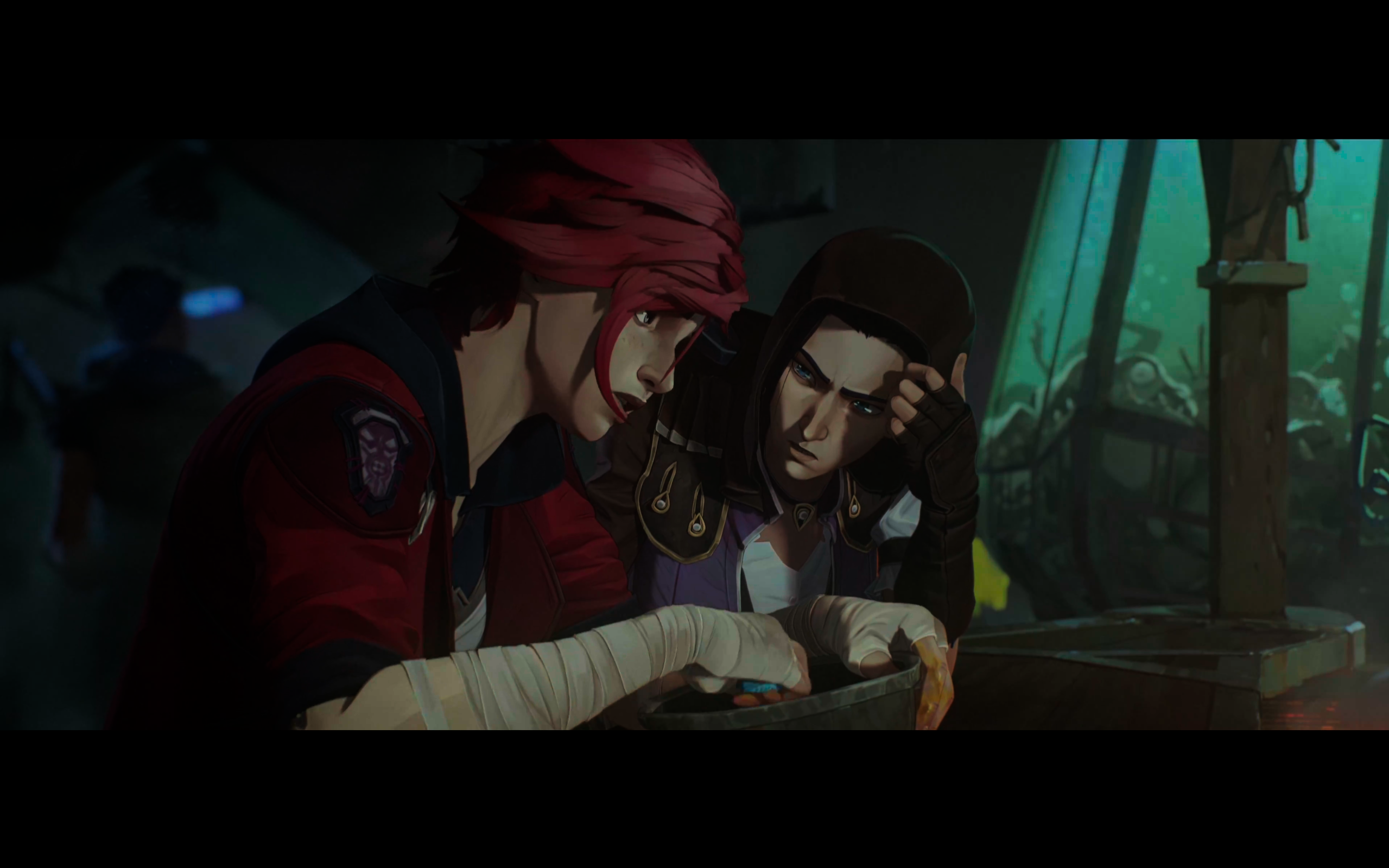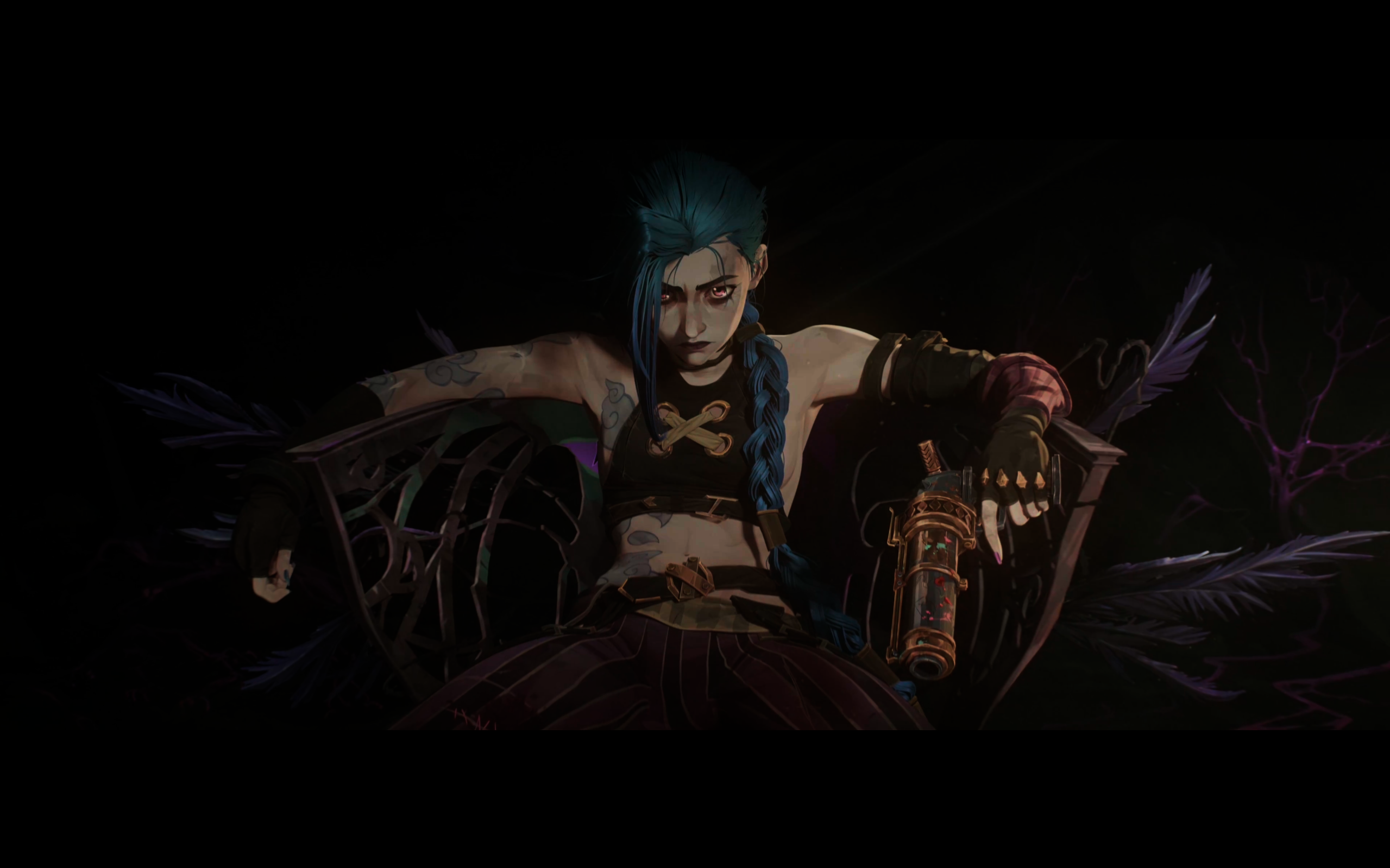 终于全家都被 jinx 绑起来坐一桌了,蔚哭爹喊娘,jinx 又爆了把希尔科杀了。然后拿起海克斯宝石供能的鲨嘴炮轰向议会,第一季终。