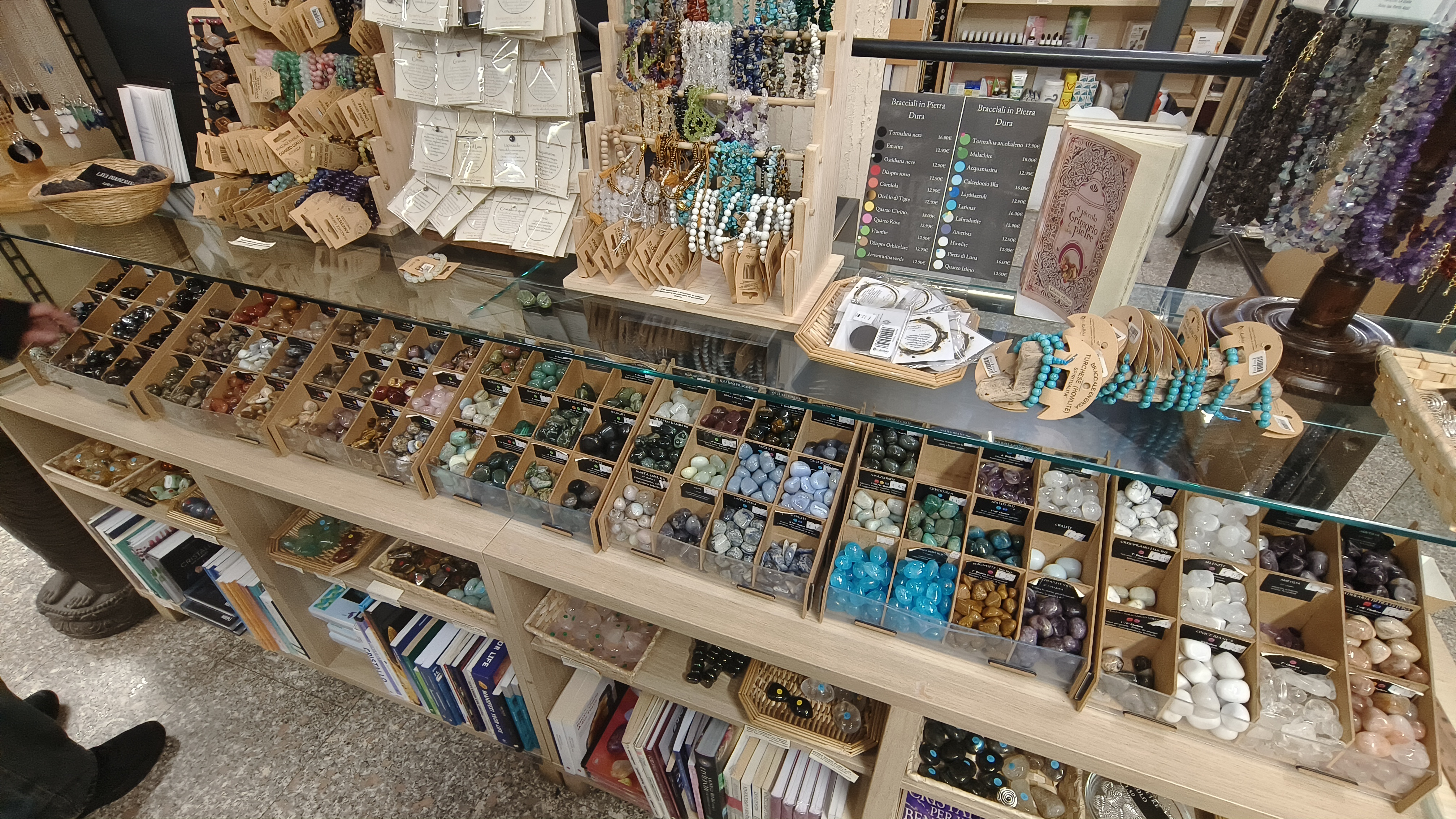 前两张是书店里面石头区域,最后一张是我没找到品种的石头,其他四个石头给了亲友,这个不知道品种的则我自己收入囊中。米兰的奇妙书店很多,除了这家神秘学书店,我们还逛了一家以海洋为主题的书店,里面的本子,各种物件,都是鲸鱼,鲨鱼,船只,指南针之类的。各种书籍也是研究海洋物种或者关于船只的。