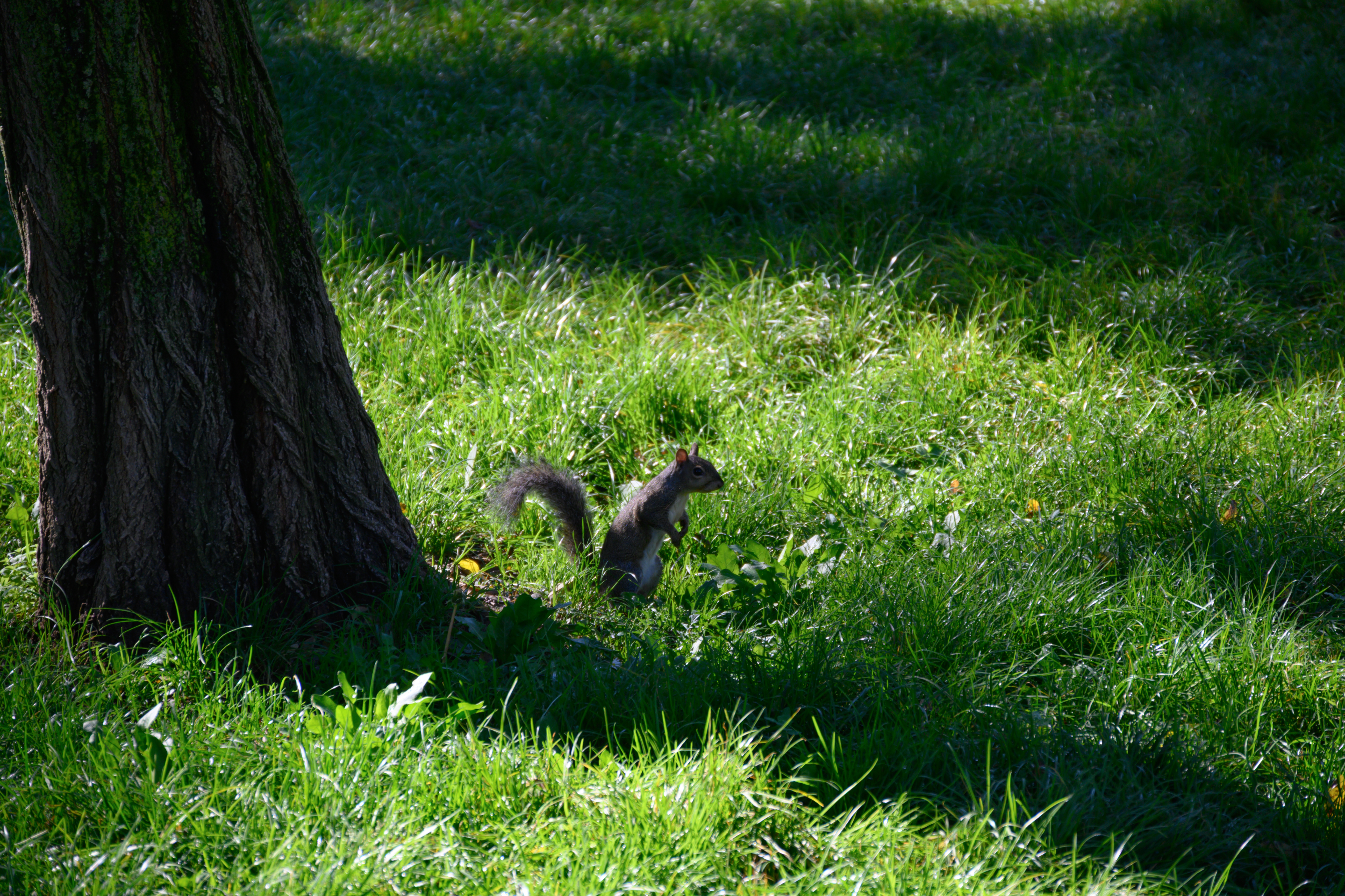 边走边拍,不一会儿就到了公园门口,走进去,看到公园的路都是白色的土地,并没有铺上水泥。旁边的草丛又两只松鼠,一只离我们近,还有一只远一些。