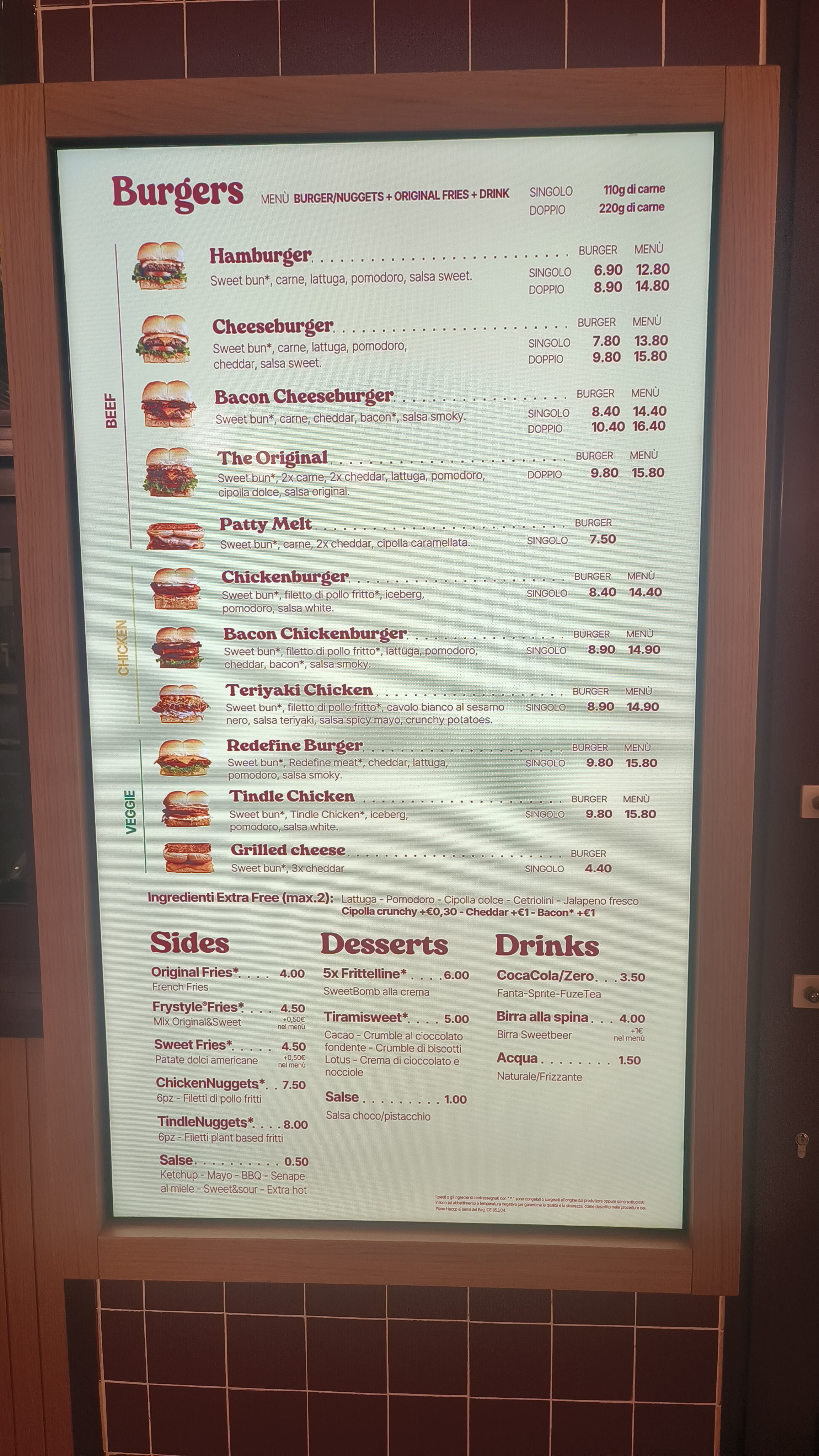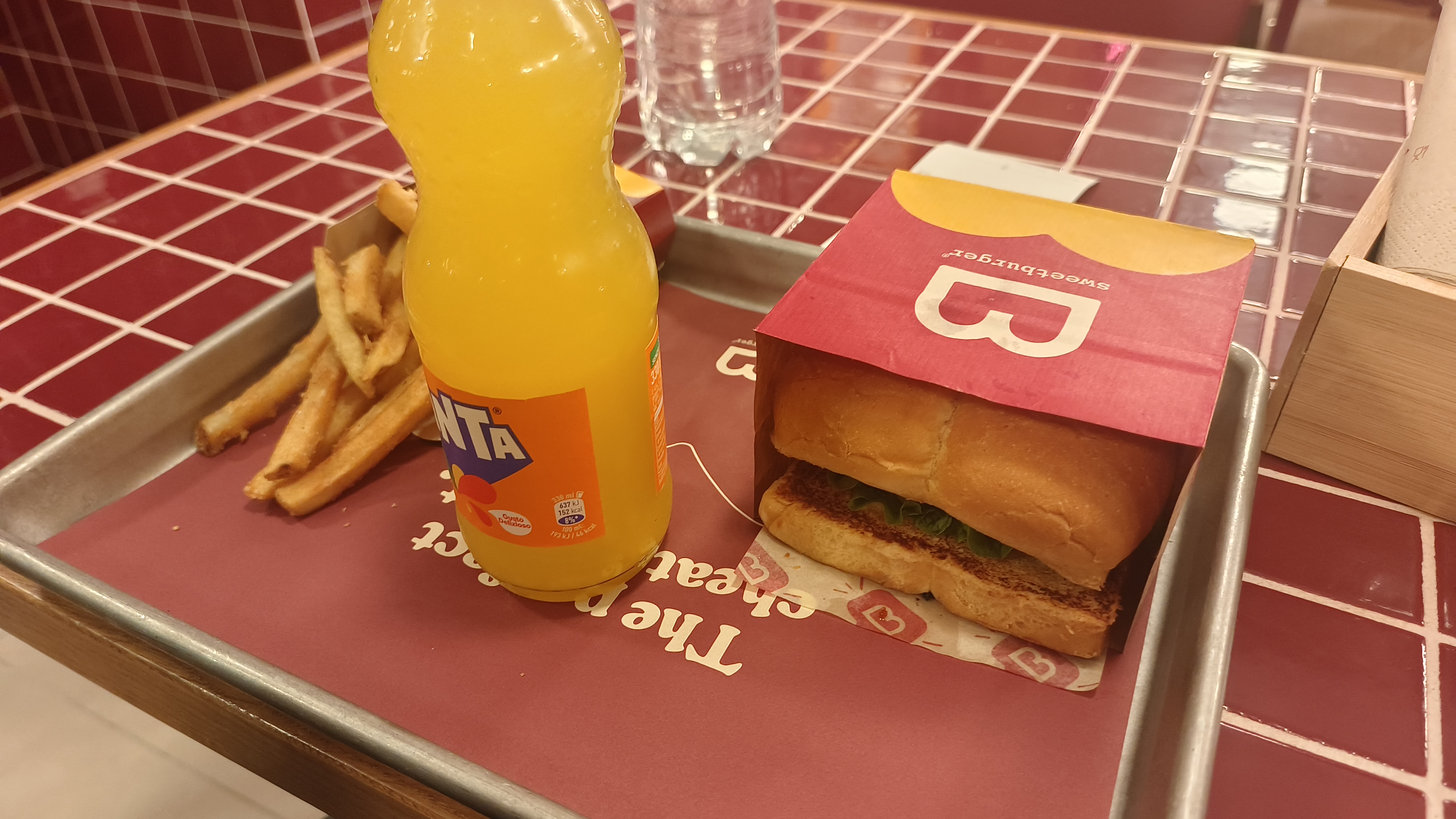当天晚上吃了还不过瘾,第二天临走前又吃了一顿,才舍得离开意大利。这家的薯条可以双拼,红薯条和薯条,还有很多种蘸酱供你选择。The Original 里面的肉饼非常有汁水,而且不会硬,肉的香气流到我的手指上,融化的黄色芝士黏在袋子上。另外值得一提的是,意大利的芬达汽水超级好喝,和国内的虚假橙子味道完全不一样,意大利的芬达是有果汁的,喝着有明显的果香气,最后回味还有橘子皮的酸涩味。